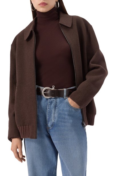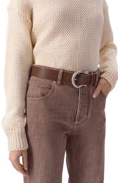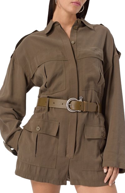 Двусторонний ремень выполнен из гладкой телячьей кожи. Аксессуар с парой разноцветных тренчиков застегивается золотистой кобурной пряжкой Gancini.