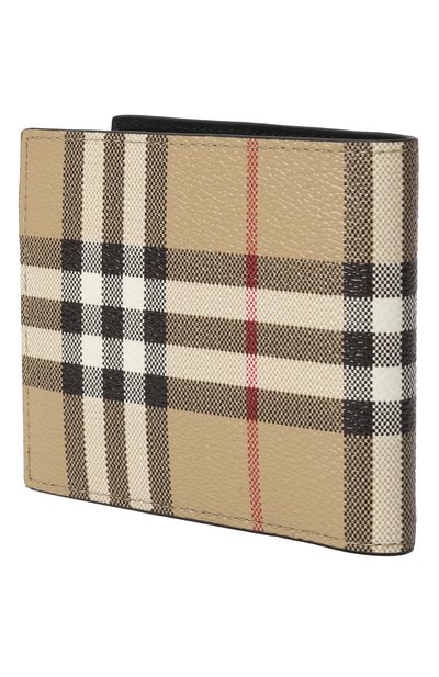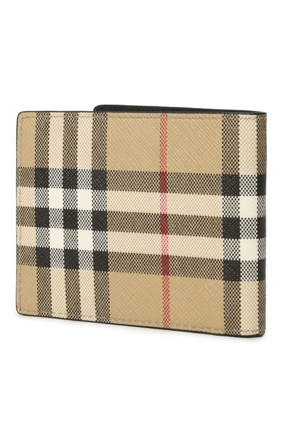 Для изготовления портмоне в фирменную клетку Vintage check использовали прочный текстиль с фактурным полимерным покрытием, которое не боится царапин и легко очищается от загрязнений. В основном отделении с отделкой из гладкой черной кожи предусмотрели четыре слота для банковских карт, отсек для купюр и карман для монет, закрывающийся клапаном с кнопкой.