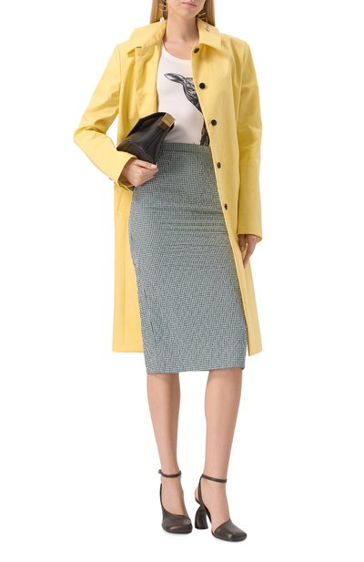 Миди-юбка из жемчужно-серой костюмной ткани в тонкую полоску подчеркивает изящность силуэта. Под потайной молнией сзади предусмотрен высокий разрез, который сохраняет свободу движений. Еще удобнее классическую модель делают скошенные боковые карманы. Изделие гармонично впишется как в деловой, так и в повседневный образ.