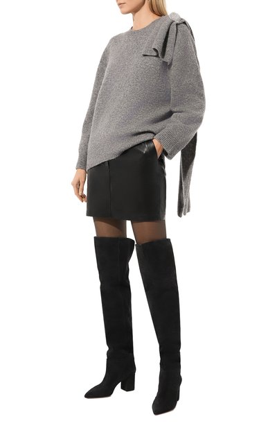 Дизайнеры марки представили летнюю версию ботфортов. Черную модель Amanda с открытым мысом, на высокой шпильке сшили из тонко выделанной бархатистой замши. Материал слегка тянется, поэтому пара облегает ногу, как чулки. Для удобства сбоку предусмотрели короткую молнию.
