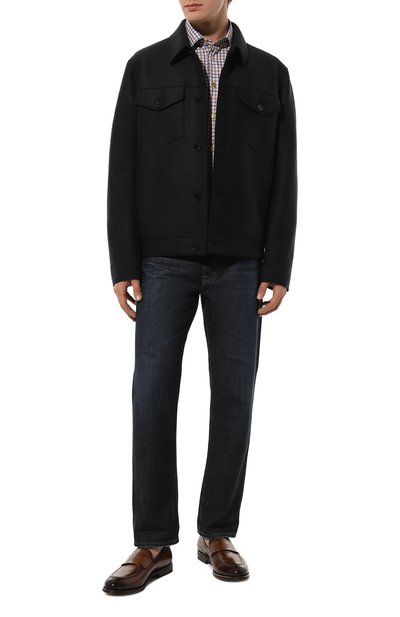 Рубашку выполнили из хлопкового поплина в клетку. Модель застегивается пуговицами из австралийского перламутра Sydney Pinctada Maxima.