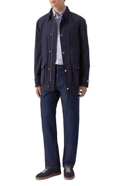 Обхват груди 122 см, обхват талии 118 см, длина рукава от плечевого шва 70 см, длина изделия по спинке 87 см. Крой Regular fit. Манжеты на пуговицах.