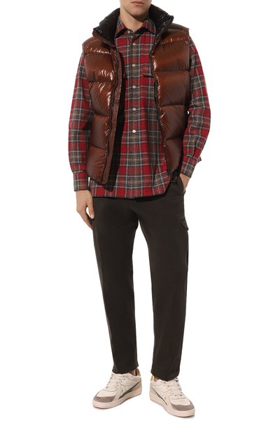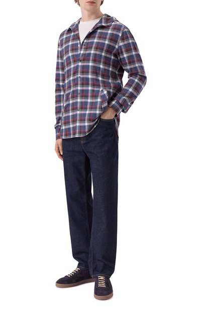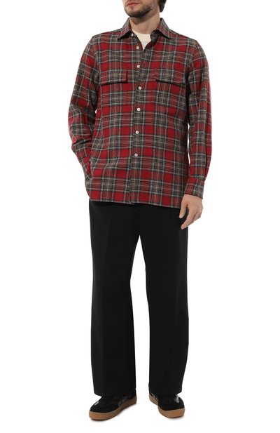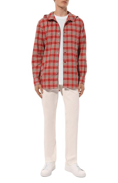 Красную клетчатую рубашку с капюшоном и двумя боковыми карманами можно использовать в качестве легкой куртки. Для пошива модели использовали прочный фактурный лен, который хорошо пропускает воздух и сохраняет ощущение свежести в течение всего дня. Изделие застегивается фирменными кнопками с логотипом марки.