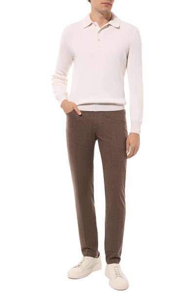 Белое поло с длинными рукавами наши стилисты предлагают сочетать с кардиганом, брюками и лоферами. За комфорт в течение дня отвечает ультратонкий почти невесомый кашемир, поддерживающий оптимальный микроклимат. Гладкий шелк в составе пряжи не дает изделию потерять форму со временем и предупреждает пилингование.