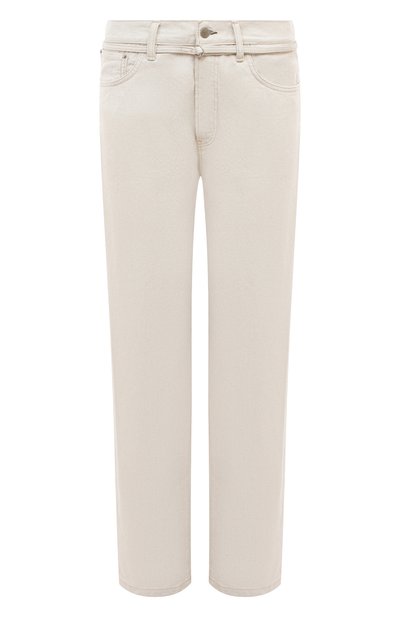 Свободные джинсы с пятью карманами и V-образной кокеткой сзади выполнили из хлопка. Пояс, украшенный патчем, дополнили узким ремнем в тон. Модель подружится и с укороченной футболкой, и со свитшотом силуэта oversize.