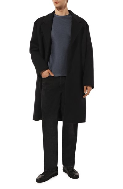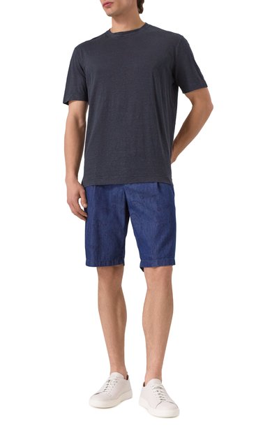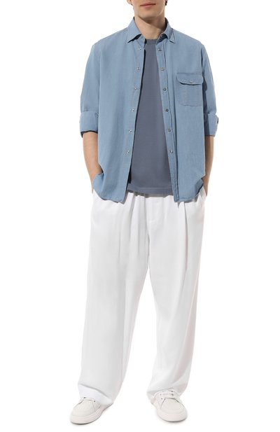 Синяя меланжевая футболка – удачная инвестиция в повседневный гардероб. Для изготовления модели использовали тонкое джерси из нежного шелка. Его гладкие прочные волокна делают материал исключительно приятным на ощупь, не дают ему вытягиваться и пилинговаться и придают изделию деликатный блеск.