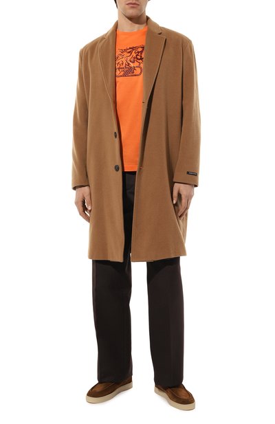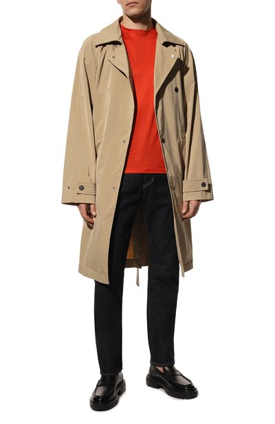 Футболку цвета терракоты сшили из длинноволокнистого хлопка, поэтому идеально гладкий трикотаж практически не пилингуется. Воздушные волокна позволяют коже дышать и быстро отводят влагу. На груди нитями в тон вышили рельефный логотип бренда.