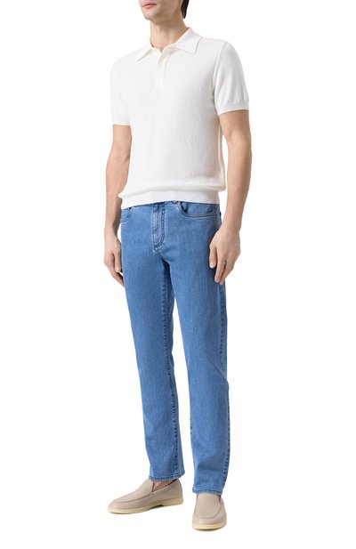 Зауженные голубые джинсы станут удачным пополнением повседневного гардероба. Лаконичная модель с текстильной коричневой лентой на заднем кармане и фирменным патчем над ним, г армонично дополнит и рубашки, и футболки любой степени яркости. Изделие сшили из прочного итальянского хлопка и выбелили, чтобы получить неоднородный оттенок, как у любимой вещи, которую носили не один сезон.
