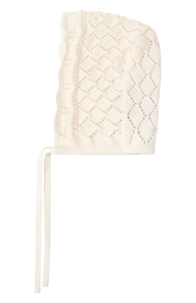 Белую шапку из коллекции Christening украсили фактурным паттерном в виде монограммы DG. Для создания модели использовали тонкую пряжу из нежного кашемира и отборного хлопка, обеспечивающую оптимальный микроклимат в межсезонье. Аксессуар с широкой фигурной манжетой закрывает уши от ветра.
