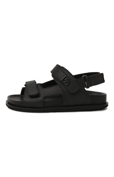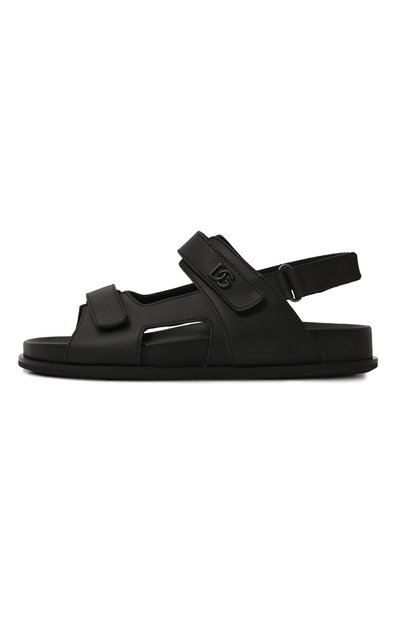 Сандалии выполнили из мягкого нубука. Два ремешка с застежками велкро позволяют точно подобрать посадку, а тонкая резиновая подошва почти не скользит.