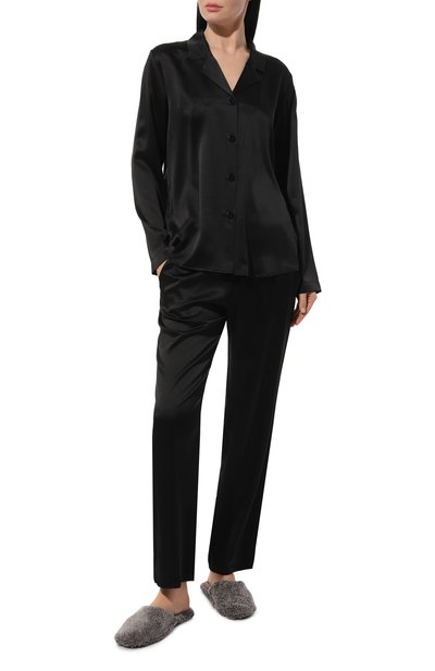 Пыльно-розовая пижама с манжетами из изысканного кружева поможет расслабиться после напряженного дня и сделает сон более полноценным. Топ с круглым вырезом и свободные брюки с эластичным поясом сшили из нежного джерси, сочетающем модал и легкий шелк. Материал приятно ощущается на коже, поддерживает оптимальный микроклимат и не сковывает движения.