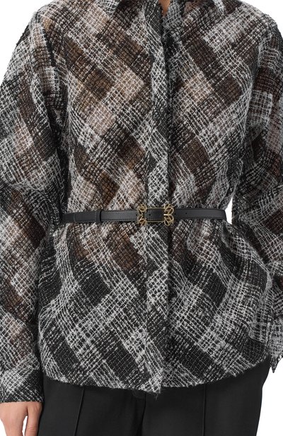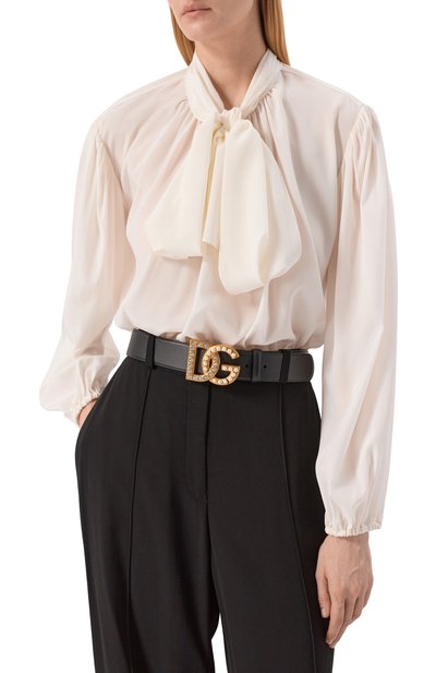 Для изготовления черного ремня с тренчиком в тон использовали прочную гладкую кожу, отполированную до деликатного блеска. Главным акцентом аксессуара братья Кейтены сделали крупную кобурную пряжку в виде надписи Pussy, выполненную из серебристого ювелирного сплава и инкрустированную сверкающими прозрачными кристаллами и перламутровыми жемчужинами. Чтобы не скрывать эту эффектную деталь, предлагаем дополнить моделью образ с брюками и заправленным за пояс кардиганом.