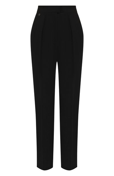 Брюки с четкими стре лками гармонично впишутся как в офисный, так и в повседневный образ. Модель выполнили из ткани на основе шерсти и шелка. Изделие с двумя прорезными карманами и эластичной вставкой на поясе сзади дополнили миниатюрной брендированной накладкой.
