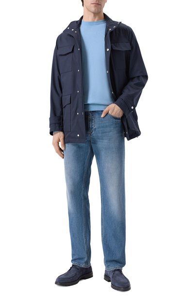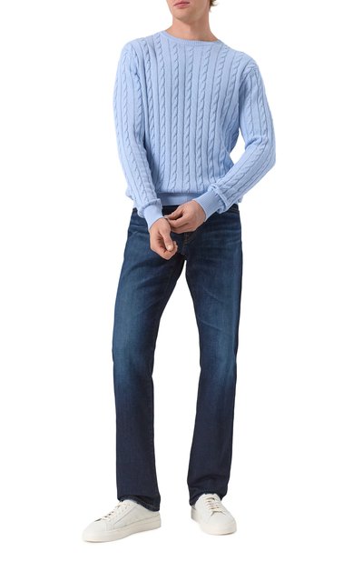 Голубой джемпер с деликатным микроузором спереди разнообразит палитру casual-образа. Для создания модели с длинными рукавами и круглой горловиной использовали тонкий мягкий трикотаж из хлопковой пряжи. Материал приятно ощущается на теле и хорошо пропускает воздух, поддерживая комфортный микроклимат, а прямой крой не ограничивает движения.
