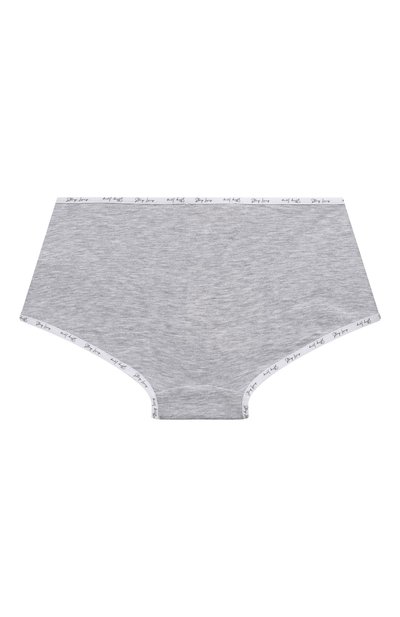 Для создания слипов использовали гипоаллергенное хлопковое джерси, которое позволяет коже дышать и отличается особой мягкостью. Узкий пояс меланжево-серой модели декорировали кружевной фестончатой отделкой, а спереди расположили миниатюрный бант из атласной ленты.