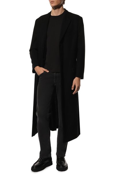 Для пошива прямых темно-серых джинсов использовали мягкий облегченный деним с добавлением стрейчевых нитей и прочного лиоцелла. Изделие из такого дышащего материала удобно садится по фигуре и не вытягивается со временем. Пояс сзади декорировали замшевым патчем с серебристым блестящим логотипом Zilli Poem, продублированным вышивкой на монетном кармане.