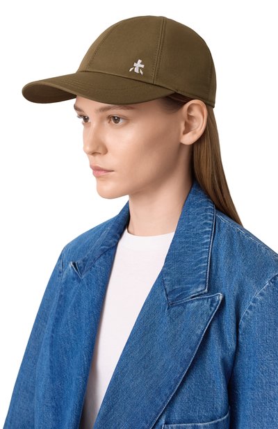 Бейсболку оттенка хаки выполнили из прочного хлопкового габардина с добавлением тонкого полиэстера, придающего шелковистый блеск. Тулью аксессуара с широким козырьком украсили фактурной вышивкой в виде монограммы YSA. Отрегулировать посадку позволяет ремешок с металлическим слайдером сзади.