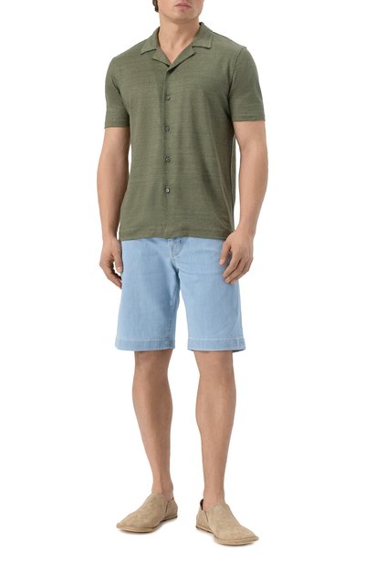 Бежевые лоферы выполнили из плотной мягкой кожи с выраженной зерненой фактурой — такой материал лучше противостоит царапинам и заломам. Металлические заклепки по бокам и шипы Rockstud сзади на контрастной подошве придают модели подчеркнуто неформальный вид.