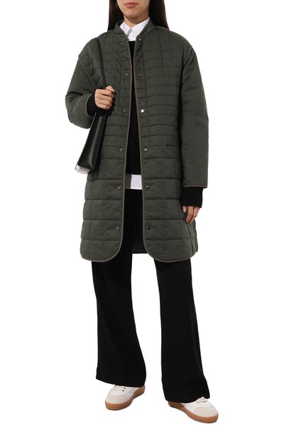 Зеленый лаконичный жакет с тремя крупными накладными карманами, отложным воротником и длинными рукавами сшит из фактурного вельвета. Материал из хлопка и льна почти не мнется и поддерживает комфортный микроклимат, а четко выверенный прямой крой не ограничивает движения.