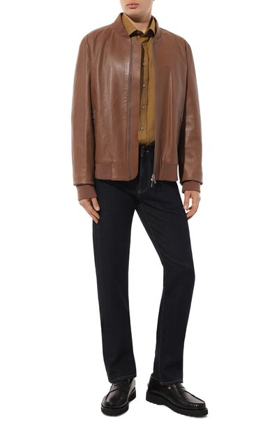 Несмотря на лаконичный крой бежевая рубашка не выглядит строго. За рамки офисного дресс-кода ее выводит тонкий хлопковый трикотаж, который отвечает и за комфорт. Материал изготовили из прочных гладких нитей, которые придают легкий блеск и делают полотно похожим на шелк. Модель дополнили нагрудным карманом, укра шенным эмблемой бренда. Ей вторят фирменные восьмиугольные пуговицы.