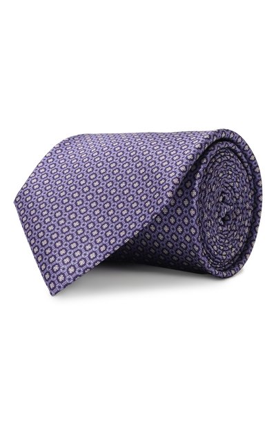 Сиреневый галстук с графичным белым микроузором наши стилисты рекомендуют сочетать с однотонными сорочкой и костюмом. Аксессуар выполнили из прочного фактурного шелка в технике семи сложений, без подклада, поэтому он хорошо драпируется и держит узел любой сложности. Длинная модель подойдет для мужчины высокого роста.
