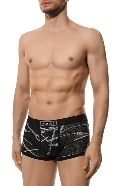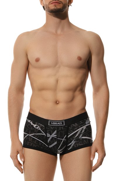 Для изготовления облегающих боксеров с ярким разноцветным принтом использовали мягкий стрейчевый хлопок, поэтому белье комфортно садится по фигуре и сохраняет оптимальный микроклимат. Разноцветный абстрактный узор поддержали розовым кантом и белым плоским поясом с объемным жаккардовым логотипом.