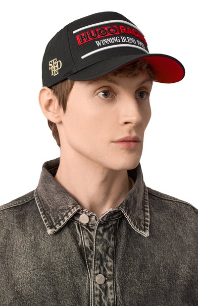 Бейсболку кремового оттенка выполнили из легкого и при этом плотного полиэстера с принтом, напоминающим рисунки от руки. Тулью спереди украсили вышитым мотивом в виде логотипа бренда и знакового желтого смайлика. Комфортную посадку по голове удобно регулировать пластиковым ремешком сзади.