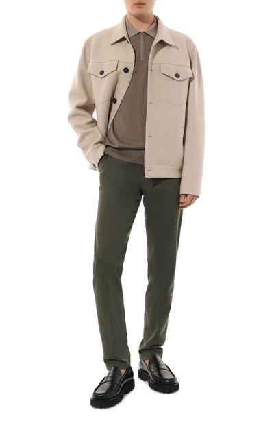 При создании джинсов использовали крой чиносов с четырьмя карманами. Модель со стрелками сшили из мягкого плотного хлопка с добавлением эластана, поэтому она комфортно садится по фигуре и не сковывает движения. На принадлежность марке указывает вышитый логотип на шлевке спереди и брендированный патч на эластичном поясе сзади.
