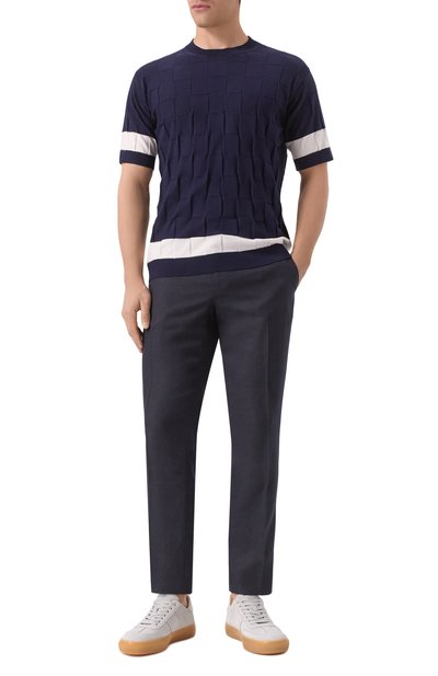 Джемпер оттенка сосновой хвои напоминает футболку с короткими рукавами. Для изготовления модели с рельефным узором спереди, формирующим игру полутонов, использовали тонкую пряжу из шелковистого хлопка ценных сортов. Материал хорошо пропускает воздух, поэтому в изделии будет комфортно даже в солнечный день.