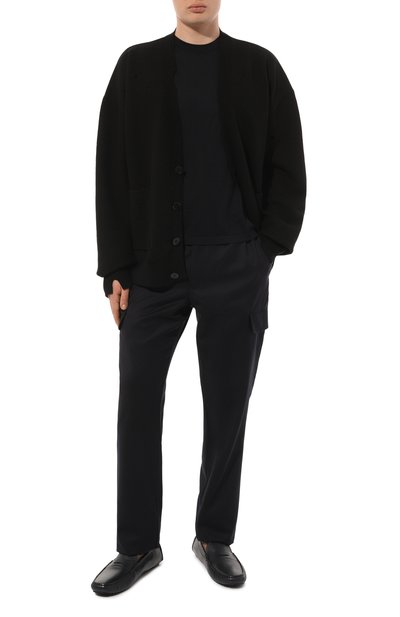 При создании темно-синей футболки команда итальянской марки изменила подход к выбору материала. Вместо традиционного для таких вещей тонкого джерси для изготовления модели использовали трикотаж на основе мягкой шерсти и гладк ого шелка. Лаконичное изделие приятно ощущается на теле и поддерживает комфортный микроклимат.