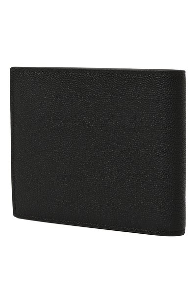 Черное портмоне изготовили из мягкой сафьяновой кожи с характерным тиснением, отполированной до деликатного блеска. Принадлежность аксессуара марке обозначили фактурным логотипом из серебристого металла. Внутри предусмотрели шесть слотов для кредитных карт, отделения для купюр и чеков и застегивающийся молнией карман для монет.