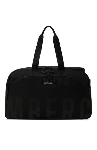 Для изготовления сумки использовали прочный текстиль, отталкивающий влагу. Аксессуар с тремя внешними и двумя внутренними карманами дополнили шлевкой для крепления на телескопическую ручку чемодана. Модель с короткими ручками и съемным плечевым ремнем декорировали логотипом в тон.