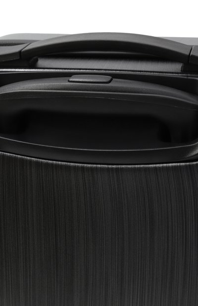 Чемодан Derive с рельефными узором и логотипом изготовили из прочного ABS-пластика. Модель с сетчатым карманом и фиксирующими ремнями внутри дополнили телескопической ручкой и четырьмя сдвоенными поворотными колесами. Аксессуар застегивается встречной молнией с кодовым замком TSA.