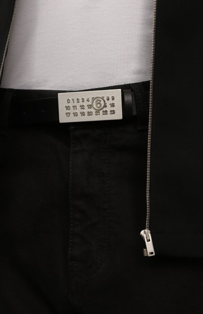 Ремень средней ширины изготовили из прочной фактурной кожи. Аксессуар регулируется прямоугольной серебристой пряжкой с рельефной гравировкой в виде фирменного цифрового кода. Такое изделие одинаково хорошо сочетается и с классическими брюками, и с джинсами.