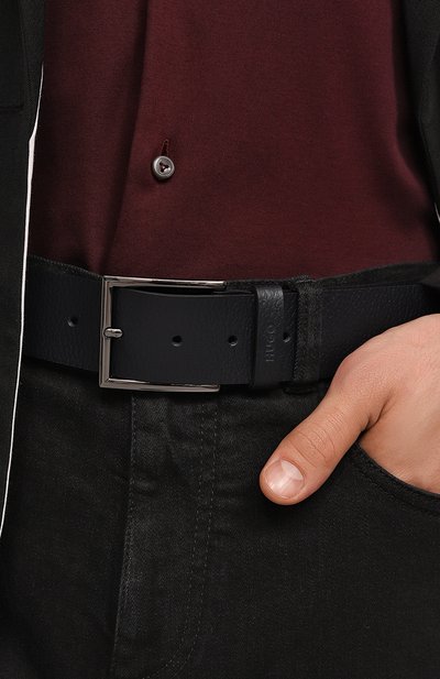 Коричневый ремень изготовили из гладкой кожи, которую получили от сертифицированных дубилен, не применяющих при производстве токсичные составы. Модель с яркими строчками дополнили прямоугольной отполированной пряжкой с выгравированным логотипом, выполненной из металла цвета оружейной бронзы.