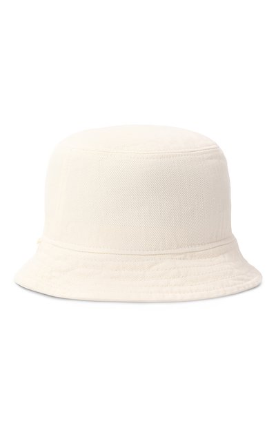 Белую панаму с прямыми стегаными полями средней ширины делает выразительнее сине-зеленый градиентный паттерн, напоминающий фирменный штамп. За максимальный комфорт даже в знойный день отвечает мягкий хлопковый габардин, поддерживающий оптимальный микроклимат.