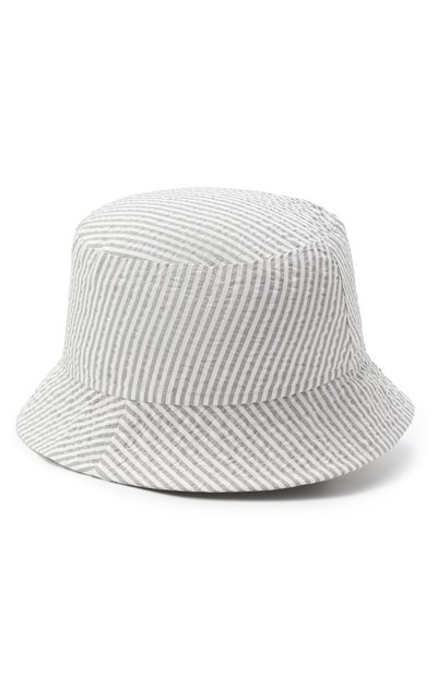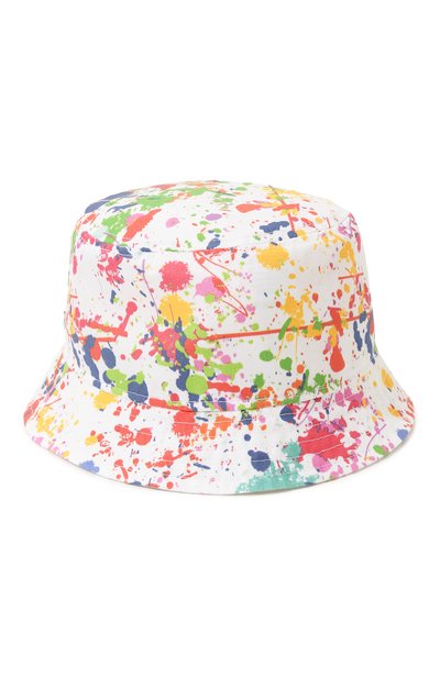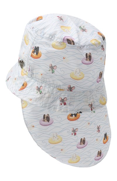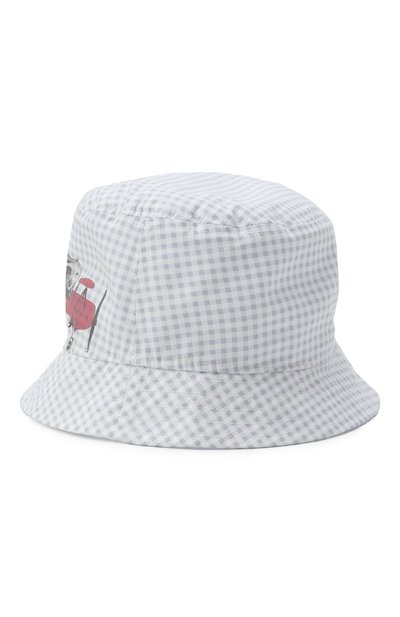 Белую панаму с прямыми стегаными полями средней ширины делает выразительнее сине-зеленый градиентный паттерн, напоминающий фирменный штамп. За максимальный комфорт даже в знойный день отвечает мягкий хлопковый габардин, поддерживающий оптимальны й микроклимат.