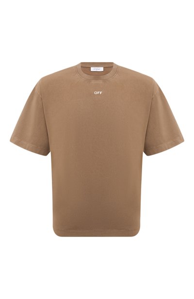 Для пошива светло-коричневой футболки силуэта oversize использовали мягкое хлопковое джерси. Изделие из такого материала слегка тянется в ширину и хорошо пропускает воздух. Модель украсили спереди белым миниатюрным логотипом бренда, а сзади нанесли крупный принт в виде словно стершегося со временем полотна, воспроизводящего картину «Святой Матфей и ангел» кисти Караваджо.