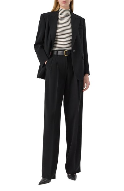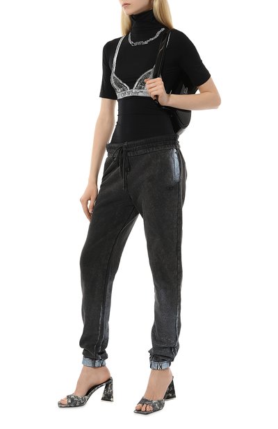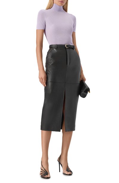 Белую базовую водолазку сделали чуть непринужденнее, напечатав на груди надпись Off, которую словно нанесли через трафарет баллончиком. Модель с высоким цельнокроеным воротом и короткими рукавами выполнили из нежной, приятной на ощупь вискозы. Изделие из такого трикотажа немного просвечивает и облегает, как вторая кожа.