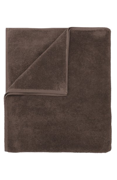 Широкое полотенце оттенка молочного шоколада изготовили из мягкого махрового хлопка, который мгновенно впитывает влагу и приятно ощущается на коже. Играя на контрасте фактур, создали крупную пентаграмму по центру изделия. Узор поддержали узкими параллельными полосами с логотипом на одной из них.