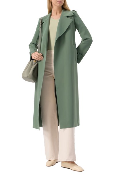 Коричневый плащ Leopard Crispy Shell с крупным леопардовым узором, словно объятым молочной дымкой, сшили из фактурной ткани, хорошо защищающей от ветра. В составе соединили волокна обычного полиэстера и переработанного, чтобы снизить расход ресурсов и уменьшить вред, наносимый природе. Модель с высокой шлицей и тремя карманами дополнили съемным поясом-лентой.