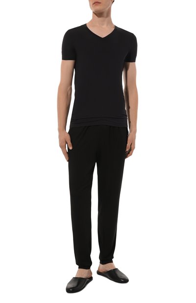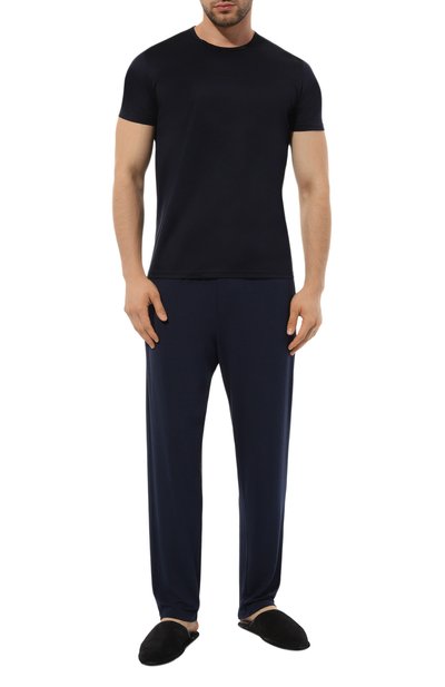 Темно-синяя футболка в исполнении команды марки, основанной семьей Зенья, удачно дополнит базовый гардероб. Для пошива модели использовали тонкое джерси из длинноволокнистого хлопка ценных сортов, который в мягкости и гладкости не уступает шелку, поэтому она получилась особенно приятной на ощупь и приобрела деликатный блеск. Чтобы изделие комфортно облегало фигуру и не вытягивалось, в состав материала добавили прочные стрейчевые нити. Из декора — только миниатюрный патч с логотипом.