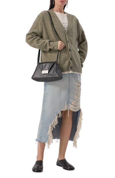 Потертости, выбеленный оттенок и необработанный край с бахромой придают голубой джинсовой юбке с завышенной посадкой винтажный вид. Модель с широкими клиновидными вставками спереди и сзади, создающими расклешенный силуэт, выполнили из плотного денима.