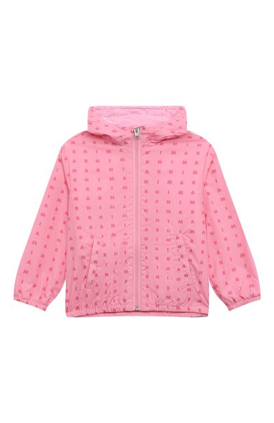 Для изготовления ветровки использовали тонкий нейлон с паттерном из букв, складывающихся в логотип. Куртку с подкладом из хлопкового джерси дополнили капюшоном и парой карманов.