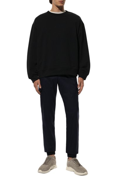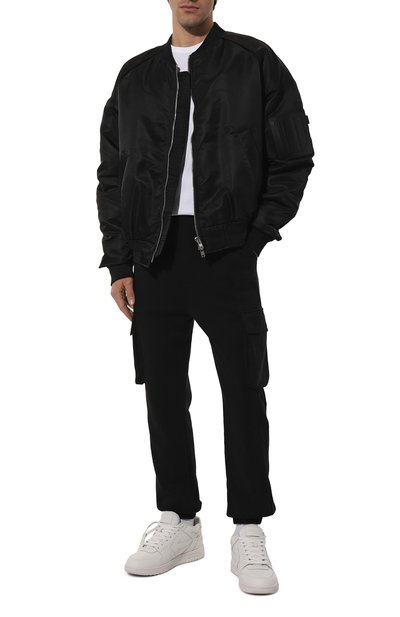 Свободный крой с заниженной линией шага и две пары карманов карго с широкими клапанами превращают эти темно-синие джоггеры в идеальную основу непринужденного повседневного образа. Для пошива модели с узким регулируемым поясом-кулиской Дрис ван Нотен выбрал прочный хлопковый твил, не требующий сложного ухода. Вдоль боковых шво в изделие дополнили длинными молниями, позволяющими изменять силуэт брючин.