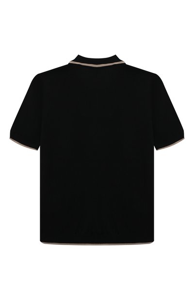 Черный кардиган с фактурным узором спереди связали из мягкого шелковистого хлопка. Приятный на ощупь материал хорошо пропускает воздух, сохраняя комфорт в теплый летний день. Модель с бежевыми полосами по краям отложного воротника и манжет застегивается кнопками с кабошонами.