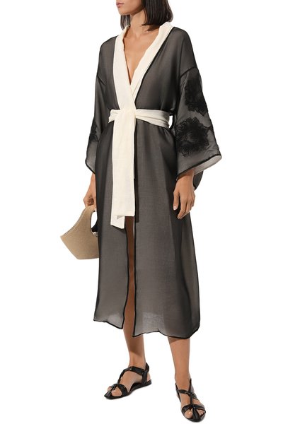 | Параметры изделия для размера M-L Обхват груди 164 см, длина рукава от горловины 71 см, длина изделия по спинке 132 см. В комплект входит: пояс. |