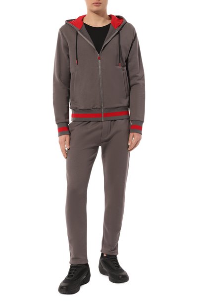 В темно-серых брюках будет одинаково удобно и на улицах города, и на утренней пробежке, и в длительной поездке. Модель с широким поясом-кулиской и тремя карманами сшили из шелковистого хлопкового трикотажа. Изделие из такого материала не сковывает движения и поддерживает ощущение комфорта в любой ситуации.