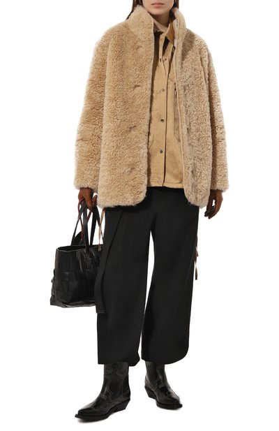 Для создания черных ботинок использовали прочный текстиль и матовую гладкую экокожу из переработанного сырья, поэтому обувь получилась не только комфортной, но и экологичной. Пару установили на широкую резиновую подошву с протектором, обеспечивающим устойчивость на скользкой и рельефной поверхности. Чтобы модель было удобно надевать, ее дополнили петлей на заднике и молнией спереди.