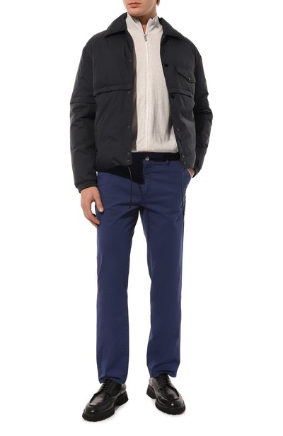 Синие джоггеры с накладным и прорезными карманами органично дополнят непринужденный образ с поло и жилетом. Для пошива модели из линии #UseTheExisting™ использовали мягкий трикотаж, хлопок для которого переработали из текстильных отходов, оставшихся от предыдущих к оллекций. Приятное на ощупь изделие, хорошо пропускающее воздух, украсили небольшим прорезиненным логотипом спереди.